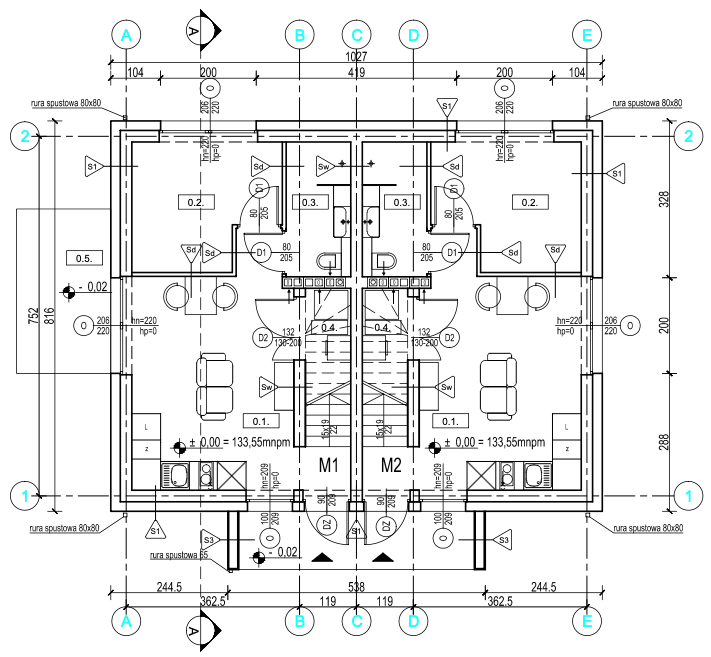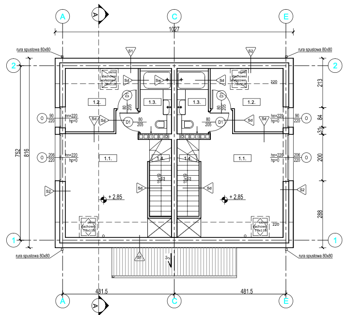 Rzuty – uwaga możliwość zmiany i wykonania dużego salonu na dole oraz 3 małych pokoi na górze.