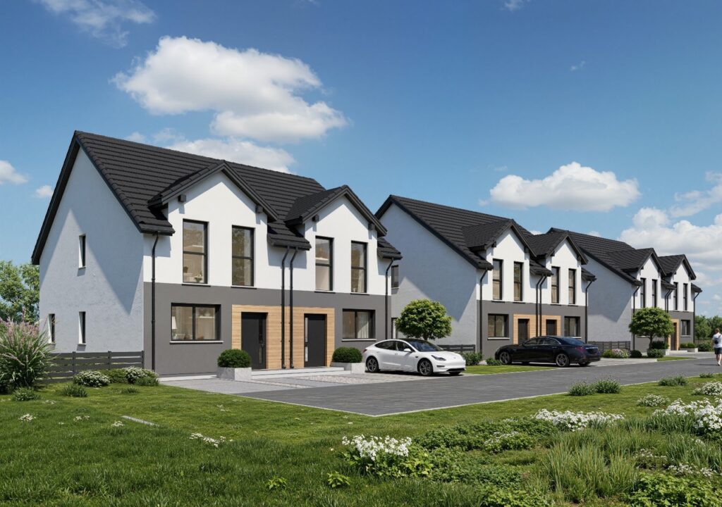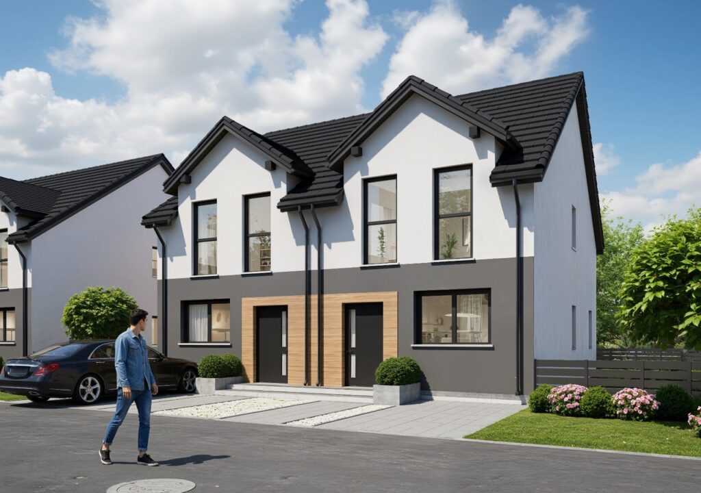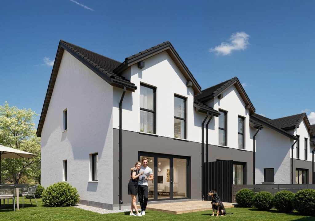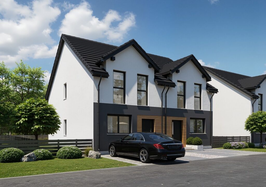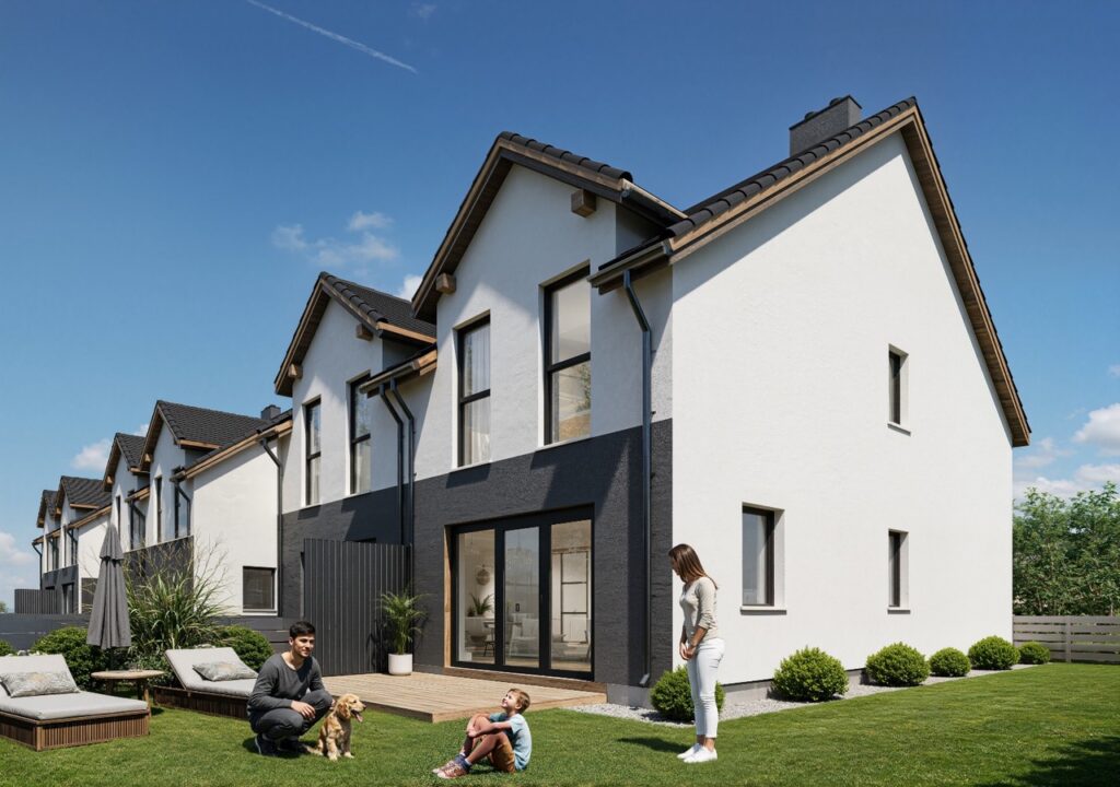 Przedstawiamy naszą kolejną inwestycję na północy Wrocławia. 6 domów w zabudowie bliźniaczej. Wszystkie wyposażone w pompy ciepła i rekuperację. Gotowe do odbioru na koniec roku 2026 – oddawane z pełnym zagospodarowaniem – ogrodzone, wybrukowane podjazdy i podejścia.